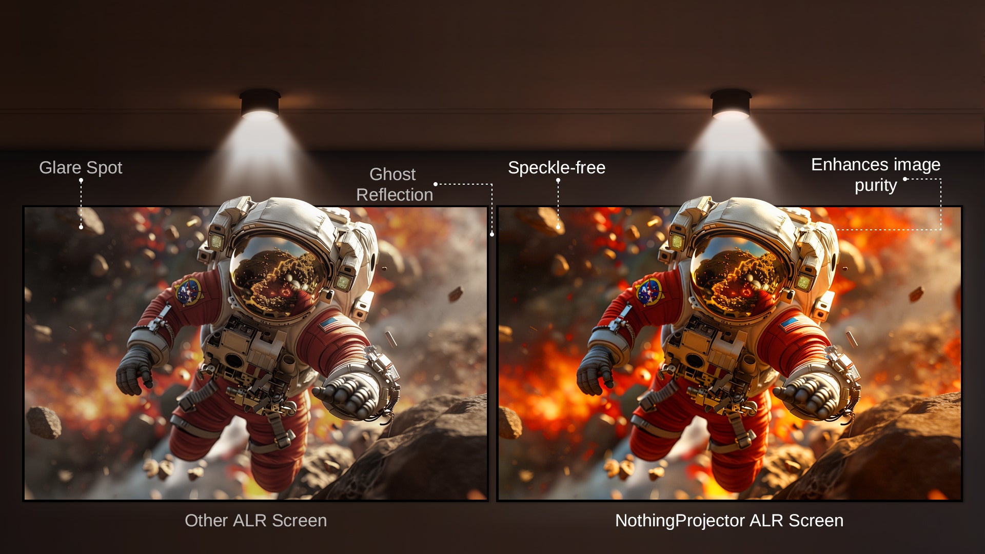 - Förbättrat långkastande ALR-skärmmaterial: Överlägsen prestanda för långkastande projektorer.